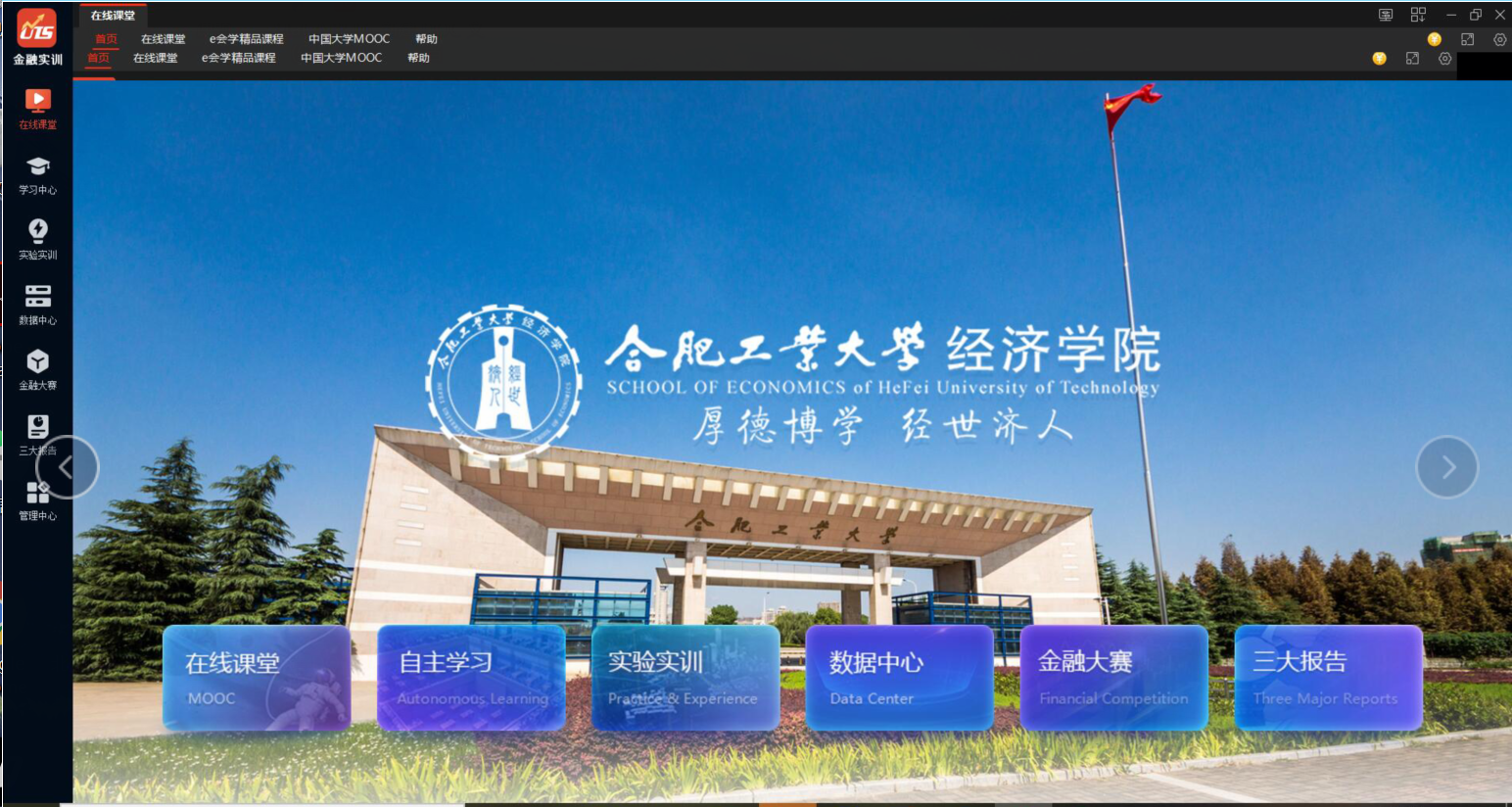 2019年底,永利官网金融工程专业入选国家级一流本科专业建设点。为努力建成特色鲜明、国内一流的金融工程专业,学院依托工科大学优势,以“金融科技与大数据”为特色方向,不断深化人才培养模式改革,多措并举提升师资育人能力。为满足专业建设的教学、科研、实验等需求,学院联合上海知临信息技术有限公司,共同开发打造了金融综合实训平台。该平台紧紧围绕金融工程一流本科专业建设标准,集成了在线课堂、自主学习、实验实训、金融大赛、数据中心五大模块,凸显了新文科的交叉融合特色。该平台的使用将为学生提供信息化学习环境,使学生在学习过程中更具主动性、实践性和探索性,切实提高金融工程专业人才培养质量。