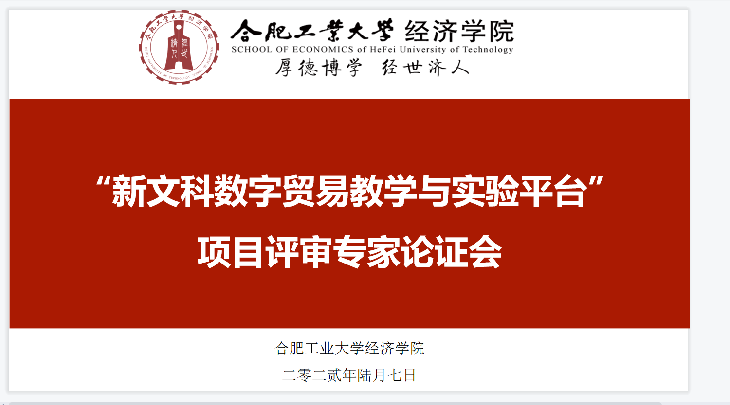 根据财政部、教育部对中央高校改善基本办学条件专项资金项目立项申报要求,304am永利集团官网于2022年6月7日组织专家对国际经济与贸易系申报的“新文科数字贸易教学与实验平台”项目进行了线上评审论证。诚邀华东理工大学李英教授、安徽财经大学黄华继教授、南京财经大学李冠艺副教授、安徽大学陈芳副教授作为评审专家,项目申报单位负责人及相关人员出席了本次评审会,会议由实验中心主任娜仁主持。