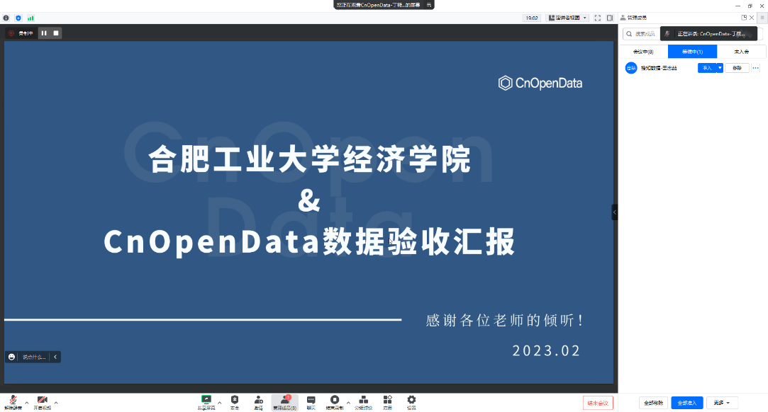 会议的汇报交流环节由实验中心余磊主持。CnOpenData和EPS数据库供应商代表丁筱雨、田忠喆主要从技术参数、供货完成情况和合同文件响应情况分别对各自数据库模块进行了汇报。四位专家核查了预验收资料,对所要验收的数据库的质量、访问等问题进行详细问询,数据库供应商代表进行数据库实际操作和相应问题的解答。最终,四位专家认为所验收数据库均已开通,使用流畅,符合合同技术要求,一致同意验收通过。