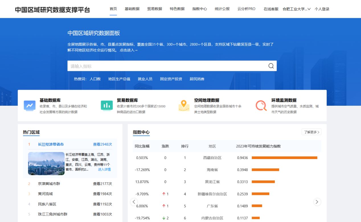 中国区域研究数据支撑平台是一款以区域经济统计数据为基础,集数据集成、数据查询与处理、数据应用、数据可视化等多项功能于一体,旨在构建多层次、开放式、平台化的中国特色区域研究数据服务体系,满足广大高校、科研院所、大型企业多元化区域研究数据需求,通过打造安全可信、融合共享的数据生态体系,全维度激活数据资源价值,助力区域经济实现高质量发展。