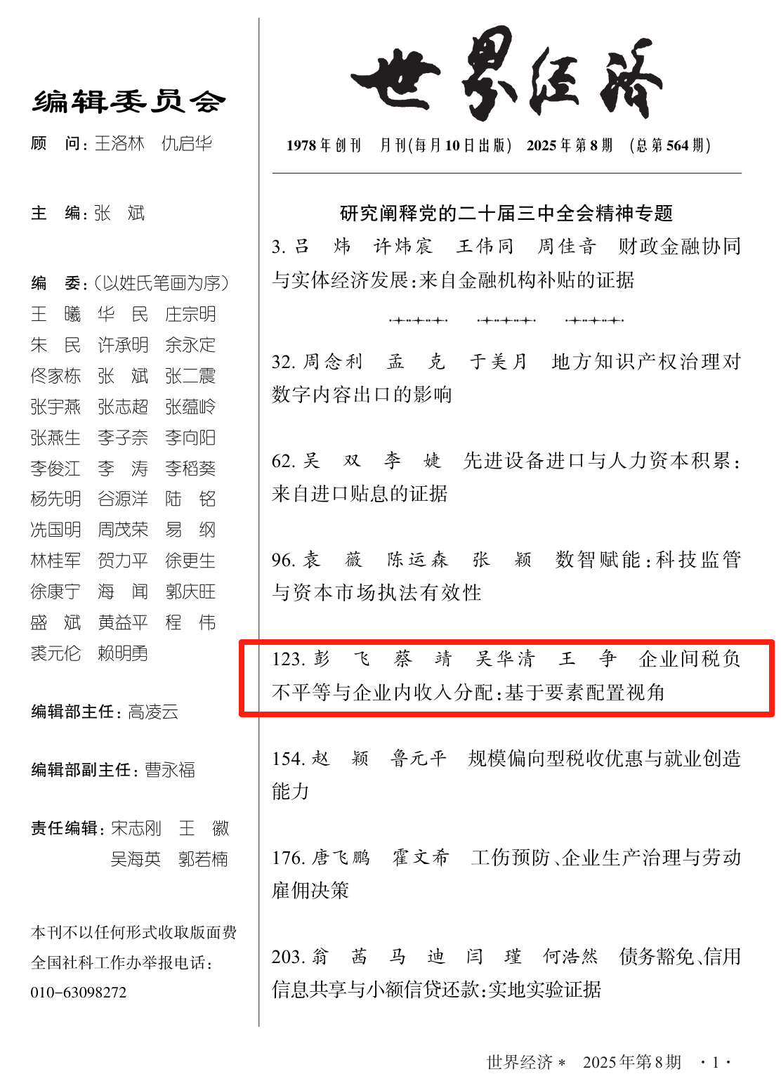 近日,永利官网彭飞、吴华清老师论文《企业间税负不平等与企业内收入分配:基于要素配置视角》在《世界经济》2025年第08期发表(合作者:蔡靖、王争)。本论文得到国家社会科学基金领军人才项目(24VRC078)、国家自然科学基金面上项目(72273038)和中央高校基本科研业务费专项资金项目(JZ2023HGPA0295)的资助。《世界经济》是由中国社会科学院主管、中国世界经济学会与世界经济与政治研究所共同主办的学术期刊,创刊于1978 年,是国内创刊最早的世界经济类刊物之一。该刊主要刊登经济学各个领域的理论研究论文,在侧重于发表世界经济相关领域理论研究的同时,也刊登有关中国经济体制改革、经济学基础理论、经济思想史、经济史和管理经济学等方面的理论研究及相关理论研究综述。2024年的复合影响因子为8.807,是AMI顶级期刊。
